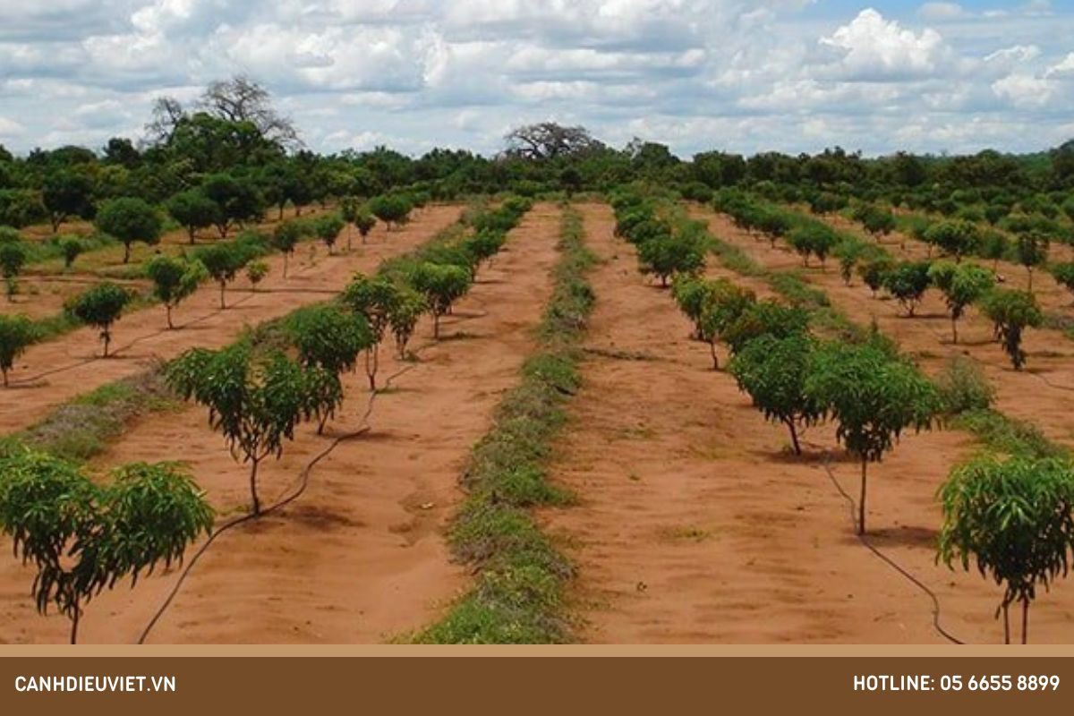 Trong trường hợp đất ở vùng thấp hoặc có nguy cơ ngập úng, việc tạo luống cao trước khi trồng cây là rất quan trọng. Khi trồng, hãy giữ khoảng cách ít nhất 3m giữa các cây để đảm bảo rằng chúng có đủ không gian để phát triển và phát triển trái tốt hơn.